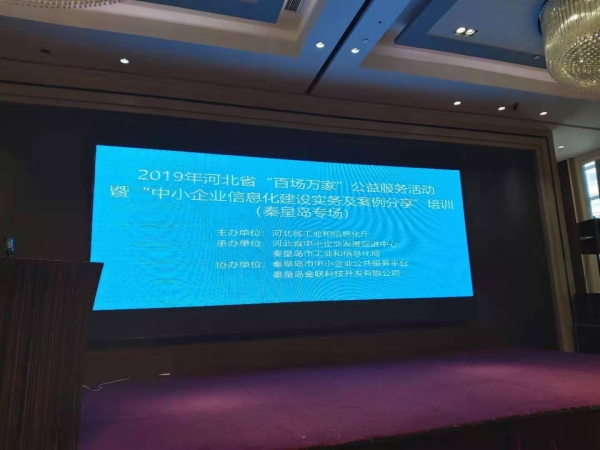 12月11日, 由河北省工业和信息化厅主办,秦皇岛市工业和信息化局承办,秦皇岛市中小企业公共服务平台、秦皇岛金联科技开发有限公司协办的“2019年河北省“百场万家”公益服务活动(秦皇岛专场)”顺利举办。秦皇岛工业和信息化局王立春科长、金蝶分销总监冯瑞阳,以及各县区工信局领导参加会议。全市150余名企业人员参加了活动。