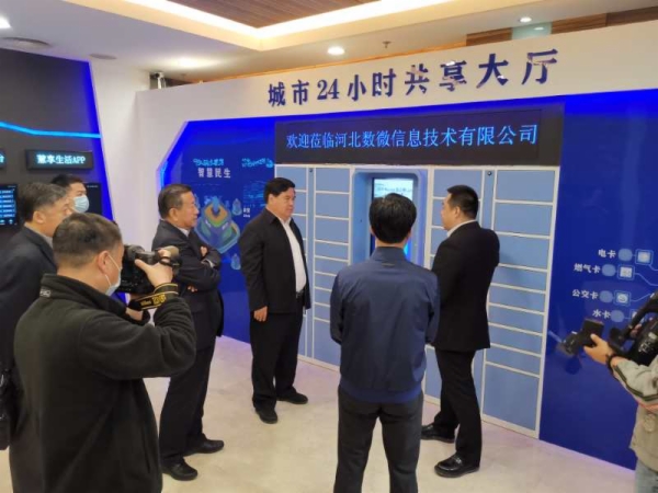 2020年5月6日,秦皇岛市市长张瑞书一行到河北数微信息技术有限公司调研智慧微生态项目。张瑞书市长详细了解了企业运营模式、布局规划,观看了企业核心产品展示等情况。要求企业要认真做好长远发展规划,整合优质资源,运用智慧数字应用技术,服务好社会、行业和产业,为政府、企业、百姓提供更智慧的产品和服务,在智慧城市建设中发挥出更大的作用。河北数微信息技术有限公司总经理徐良淑接待了张瑞书市长一行,向张瑞书市长一行详细介绍了数微信息国内首创的24小时共享大厅、智慧微生态平台、智慧社区整体解决方案、生态数据服务平台等内容。